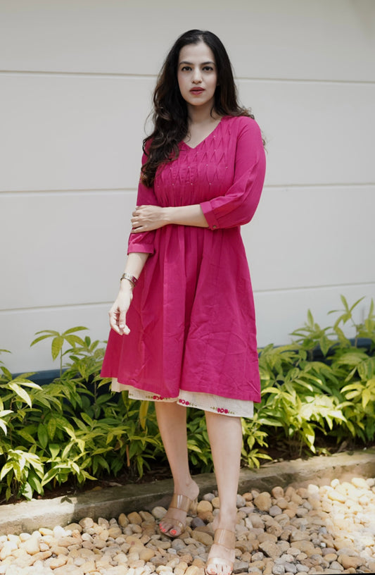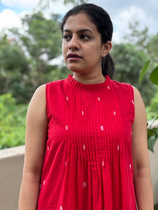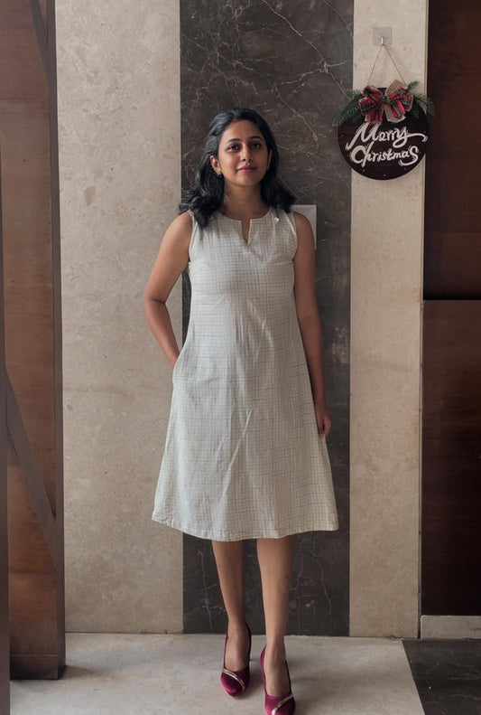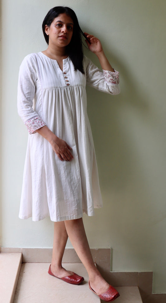 Sold outWhite Jamdani Pintuck Cotton Dress