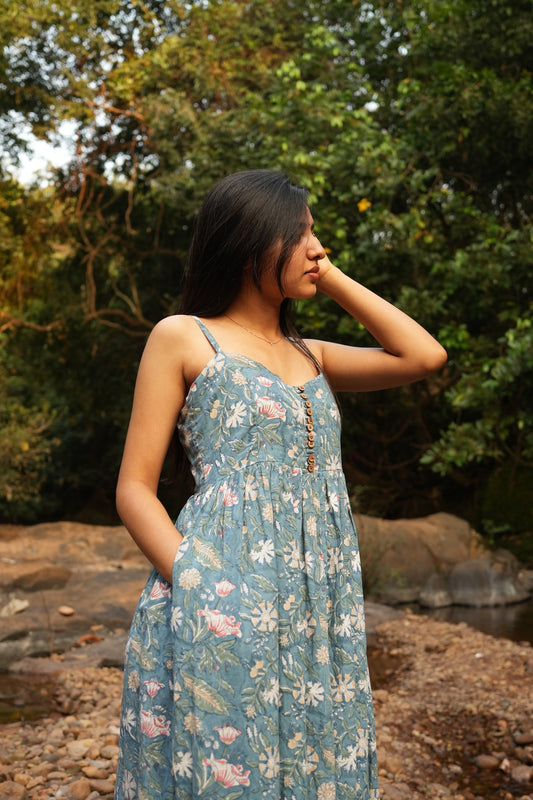 Lakshmi Menon’s Blue Floral Cotton Strap Maxi Dress
